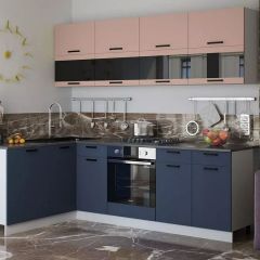 ТЕХНО Кухонный гарнитур угловой 2,4х1,6 м Компоновка №4 (Пудра софт/Ультрамарин софт) | фото