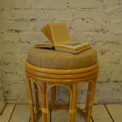 Пуф из ротанга с мягким сиденьем.